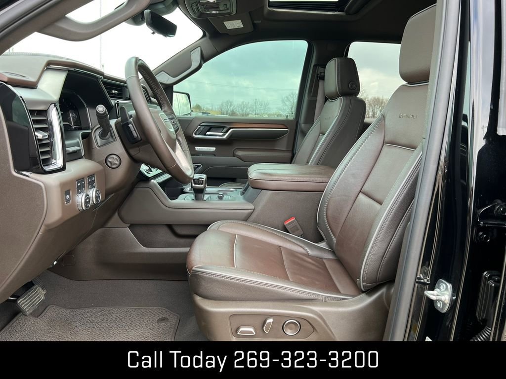 GMC Certified Pre-Owned Certified, 10-Speed Automatic, 4WD, Atmosphere/Brownstone Leather, 12-Way Power Driver Seat Adjuster w/Lumbar, 12-Way Power Passenger Seat Adjuster w/Lumbar, 120-Volt Bed Mounted Power Outlet, 120-Volt Interior Power Outlet, 170 Amp Alternator, 2 Charge/Data USB Ports Inside Center Console, 2 Type-C Charge-Only Rear USB Ports, 2 USB Ports, 3.23 Rear Axle Ratio, 4-Wheel Disc Brakes, 7 Speakers, ABS brakes, Adaptive suspension, Air Conditioning, Alloy wheels, AM/FM radio: SiriusXM with 360L, Apple CarPlay/Android Auto, Auto High-beam Headlights, Auto-dimming door mirrors, Auto-dimming Rear-View mirror, Auto-Locking Rear Differential, Automatic temperature control, Auxiliary External Transmission Oil Cooler, Bed View Camera, Brake assist, Buckle to Drive, Bumpers: body-color, Chrome Header w/Signature Denali Chrome Grille, Chrome Recovery Hooks, Chrome Wheel To Wheel Assist Steps, Color-Keyed Carpeting Floor Covering, Compass, Deep-Tinted Glass, Delay-off headlights, Denali Premium Suspension w/Adaptive Ride Control, Denali Reserve Package, Driver door bin, Driver Memory, Driver vanity mirror, Dual front impact airbags, Dual front side impact airbags, Electric Rear-Window Defogger, Electronic Stability Control, Emergency communication system: OnStar, Enhanced Automatic Emergency Braking, Floor-Mounted Center Console, Following Distance Indicator, Forge Perforated Leather Seat Trim, Forward Collision Alert, Front anti-roll bar, Front Bucket Seats, Front Center Armrest, Front dual zone A/C, Front fog lights, Front Pedestrian Braking, Front Rain-Sensing Wipers, Front reading lights, Front wheel independent suspension, Fully automatic headlights, Garage door transmitter, Genuine wood console insert, Genuine wood dashboard insert, Genuine wood door panel insert, GMC MultiPro Power Steps, HD Surround Vision, Heated 2nd Row Outboard Seats, Heated door mirrors, Heated Driver & Front Outboard Passenger Seating, Heated front seats, Heated rear seats, Heated steering wheel, Heavy-Duty Air Filter, Hill Descent Control, Hitch Guidance, Hitch View, Illuminated entry, In-Vehicle Trailering System App, Integrated Trailer Brake Controller, IntelliBeam Automatic High Beam On/Off, Keyless Open & Start, Lane Keep Assist w/Lane Departure Warning, LED Cargo Area Lighting, Low tire pressure warning, Memory seat, Multicolor 15 Diagonal Head-Up Display, Navigation System, Occupant sensing airbag, OnStar Services Capable, Outside temperature display, Overhead airbag, Overhead console, Panic alarm, Passenger door bin, Passenger vanity mirror, Perimeter Lighting, Power Door Locks, Power door mirrors, Power driver seat, Power Front Passenger Windows w/Express Up/Down, Power Front Windows w/Driver Express Up/Down, Power passenger seat, Power Rake & Telescoping Steering Column, Power Rear Windows w/Express Down, Power Sliding Rear Window w/Rear Defogger, Power steering, Power Sunroof, Power windows, Preferred Equipment Group 5SA, Premium Bose 7-Speaker Sound System, Push Button Start, Radio data system, Radio: Premium GMC Infotainment Audio System, Rain sensing wipers, Rear Camera Mirror, Rear Cross Traffic Braking, Rear Pedestrian Detection, Rear re