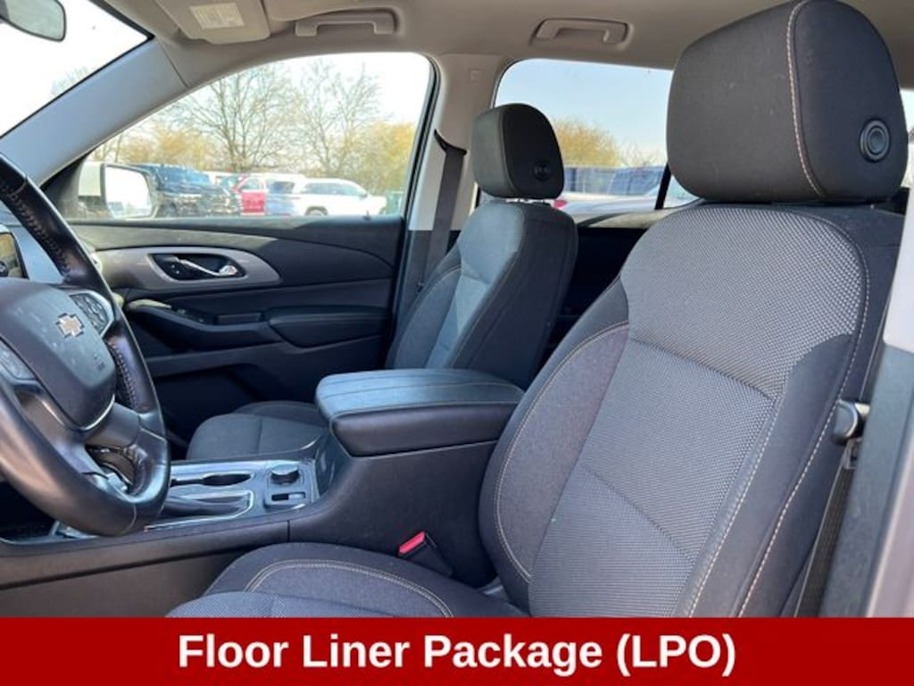 The Traverse's spacious interior offers seating for up to 7 passengers, with premium cloth upholstery and a wealth of comfort and convenience features. Enjoy the convenience of the power liftgate, remote keyless entry, and steering wheel-mounted audio controls. Stay connected with the Chevrolet Infotainment system featuring an 8-inch touchscreen display, Apple CarPlay, and Android Auto.