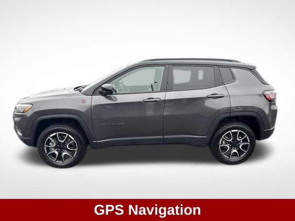 This Compass Trailhawk in Gray Metallic Clearcoat is ready to take on any adventure. With its premium leather-trimmed bucket seats, heated front seats, power 2-way driver and passenger lumbar adjust, and 10.25-inch TFT color display cluster, you'll experience unparalleled comfort and style. The Class III receiver hitch and 4-pin wiring harness make it easy to tow your favorite toys, while the LED low/high-beam projector headlamps, premium LED fog lamps, and premium taillamps ensure you'll stand out on the road.