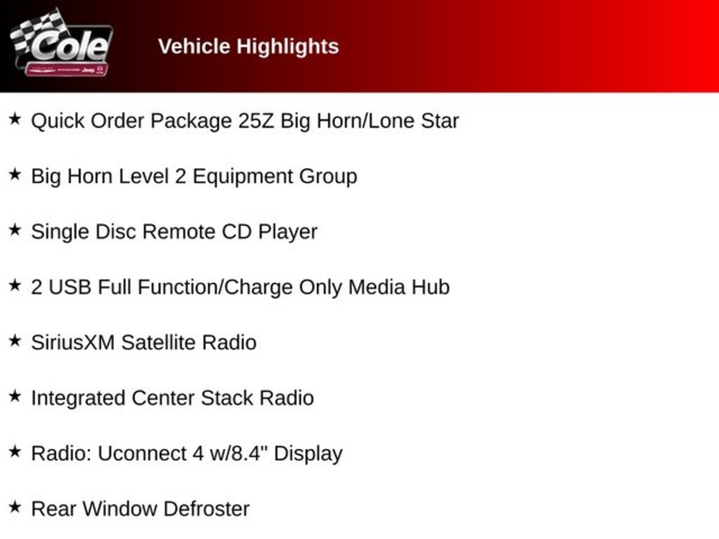 The Big Horn/Lone Star trim level adds an array of premium features to elevate your driving experience. From the integrated center stack radio and 115V power outlets to the universal garage door opener and power-folding mirrors, this Ram 1500 is packed with the technology and convenience you crave.