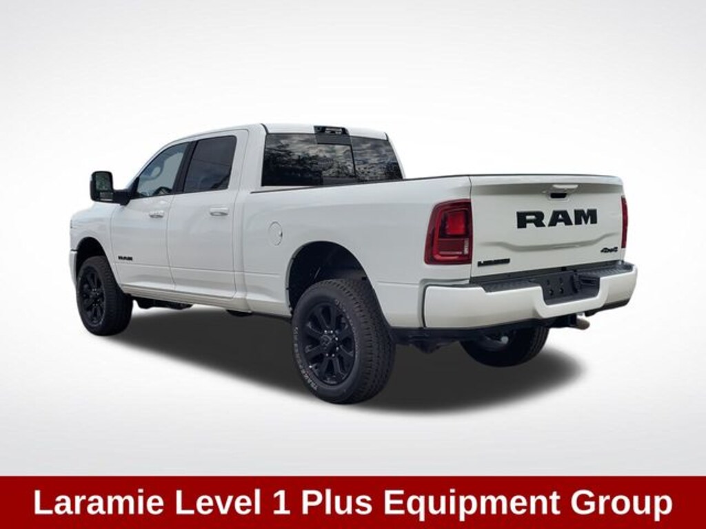 ⢠LARAMIE LEVEL 1 PLUS EQUIPMENT GROUP: Elevating your driving experience with advanced technologies like adaptive steering, auto-dimming mirrors, and a deployable bed step for effortless access.