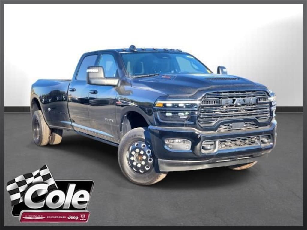 #1 Seat Foam Cushion, 14.4" Touchscreen Display, 17 Speaker harman/kardon Premium Sound, 2nd Row In Floor Storage Bins, 4G LTE Wi-Fi Hot Spot, 50 Gallon Fuel Tank, 6000# Front Axle w/Hub Ext, Active Lane Management System, Adaptive Steering System, Alexa Built-In, Apple CarPlay, Auto Adjust In Reverse Exterior Mirrors, Auto Dimming Exterior Passenger Mirror, Auto High Beam Headlamp Control, Auto Power-Folding Mirrors, Auto-Dimming Exterior Mirrors, Black Exterior Mirrors, Black Exterior Truck Badging, Black Wheel Center Hub, Body Color Grille Surround, Box & Rear Fender Clearance Lamps, Center Hub, Chrome Exterior Mirrors, Clearance Lamps, Connected Travel & Traffic Services, Connectivity - US/Canada, CTR Stop Lamp w/Cargo View Camera, Disassociated Touchscreen Display, Drowsy Driver Detection, Dual Rear Wheels, Emergency Vehicle Alert System (EVAS), Exterior Mirrors Courtesy Lamps, Exterior Mirrors w/Heating Element, Exterior Mirrors w/Memory, Exterior Mirrors w/Supplemental Signals, Foam Bottle Insert (Door Trim Panel), For Details Visit DriveUconnect.com, For More Info, Call 800-643-2112, Forward & Reverse Utility Lights, Global Telematics Box Module (TBM), Gloss Black Grille Billets/Accents, Google Android Auto, GPS Antenna Input, GPS Navigation, HD Radio, Integrated Voice Command w/Bluetooth, Laramie Level 2 Plus Equipment Group, Leather Trimmed Bucket Seats, LED Bed Lighting, Mirror Running Lights, MOPAR Deployable Bed Step, MOPAR Spray In Bedliner, Night Edition, Off-Road Information Pages, Power Adjust Mirrors, Power Adjustable Pedals w/Memory, Power Deployable Running Boards, Power Heat Fold Memory Telescopic Mirrors, Power Telescoping Mirrors, Power-Adjustable Convex Aux Mirrors, Quick Order Package 24H Laramie, Radio: Uconnect 5 Nav w/14.4" Display, Rain Sensitive Windshield Wipers, Remote Tailgate Release, Selectable Tire Fill Alert, SiriusXM Radio Service, SiriusXM w/360L, Sport Performance Hood, Traffic Sign Recognition, Trailer Tow Pages, Wheels: 17" x 6.0" Polished Aluminum, 10 Speakers, 115V Auxiliary Rear Power Outlet, 2 Way Rear Headrest Seat, 4 Way Front Headrests, 4-Wheel Disc Brakes, ABS brakes, Air Conditioning, Alloy wheels, AM/FM radio: SiriusXM with 360L, Apple CarPlay/Android Auto, Auto-dimming Rear-View mirror, Automatic temperature control, Brake assist, Bucket Seats, Bumpers: body-color, Compass, Delay-off headlights, Delete Deployable Bed Step, Driver door bin, Driver vanity mirror, Dual front impact airbags, Dual front side impact airbags, Dual Wireless Charging Pad, Electronic Stability Control, Engine Block Heater, Folding Flat Load Floor Storage, Front anti-roll bar, Front Center Armrest w/Storage, Front dual zone A/C, Front fog lights, Front License Plate Bracket, Front reading lights, Front Seat Back Map Pockets, Full Length Upgraded Floor Console, Fully automatic headlights, Garage door transmitter, Heated door mirrors, Heated Front Seats, Heated front seats, Heated Steering Wheel, Heated steering wheel, High Back Seats, Illuminated entry, Leather Trim 40/20/40 Bench Seat, Low tire pressure warning, MOPAR Front & Rear Rubber Floor Mats, Navigation System, Occupant sensing airbag, Outside temperature display, Overhead airbag, Overhead console, Panic alarm, ParkView Rear Back-Up Camera, Passenger door bin, Passenger vanity mirror, Power 2-Way Driver Lumbar Adjust, Power 2-Way Passenger Lumbar Adjust, Power Adjust 8-Way Driver Seat, Power Adjust 8-Way Front Passenger Seat, Power door mirrors, Power driver seat, Power passenger seat, Power steering, Power windows, Radio data system, Radio: Uconnect 5 Nav w/12.0" Display, Rear 60/40 Folding Seat, Rear reading lights, Rear