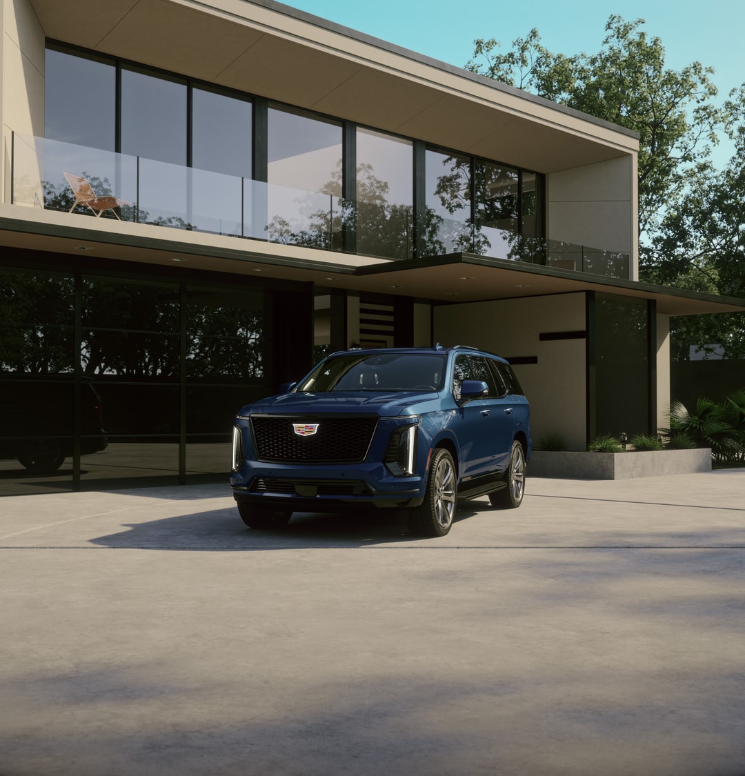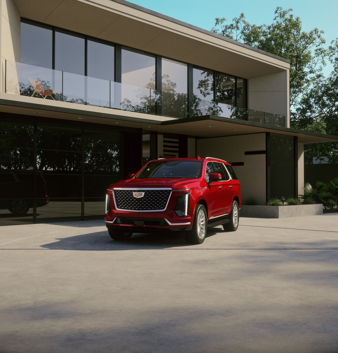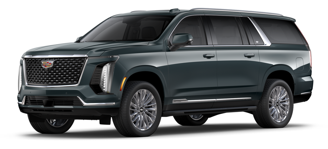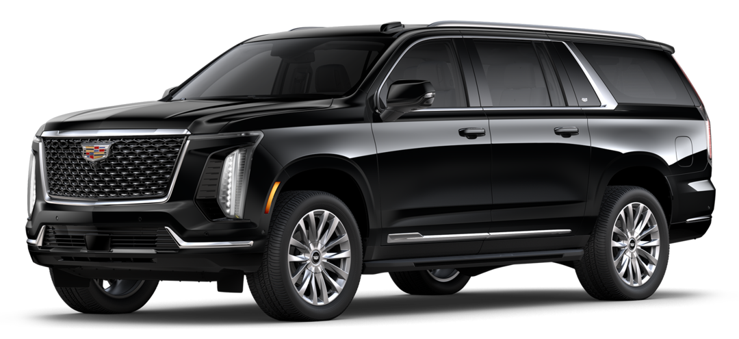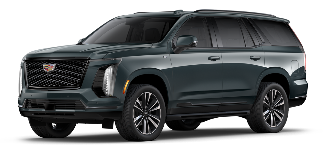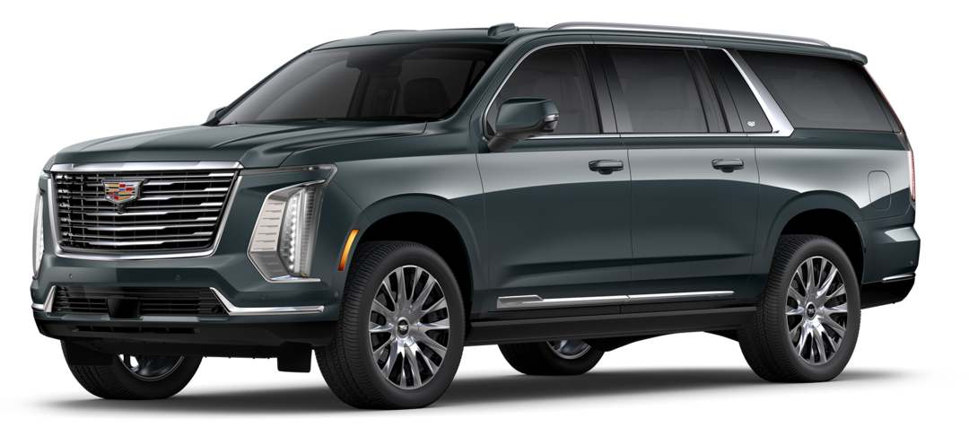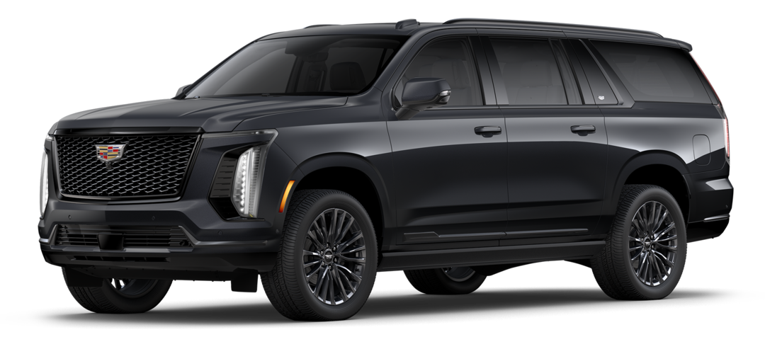 Escalade-V: Builds on Premium Luxury Platinum with supercharged V8 engine, 24-inch wheels, performance-tuned air suspension, Brembo brakes, unique drive modes, and a front console fridge.