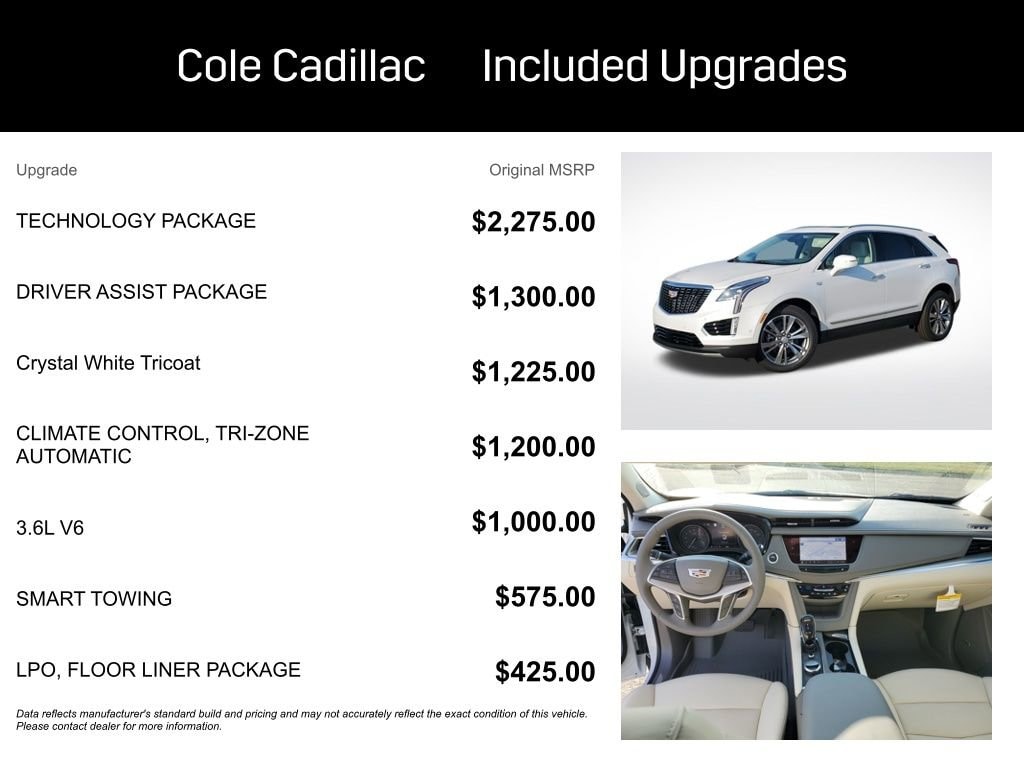Price includes: $1000 - Cadillac Financial APR & Down Payment Assistance Program: $1000 Allowance and 2.90% APR for 36 months. $29.04 per $1000 financed. Available to well qualified buyers who finance through Cadillac Financial. XGA. Exp. 01/02/2026 WE DELIVER! BUY ONLINE-TEXT-EMAIL-CHAT-PHONE AND WE WILL DELIVER YOUR NEXT VEHICLE TO YOUR DOOR! FROM OUR SALES FLOOR TO YOUR DOOR! IT'S THAT EASY! Crystal White Tricoat 2025 Cadillac XT5 Premium Luxury AWD 9-Speed Automatic 3.6L V6 DI VVT